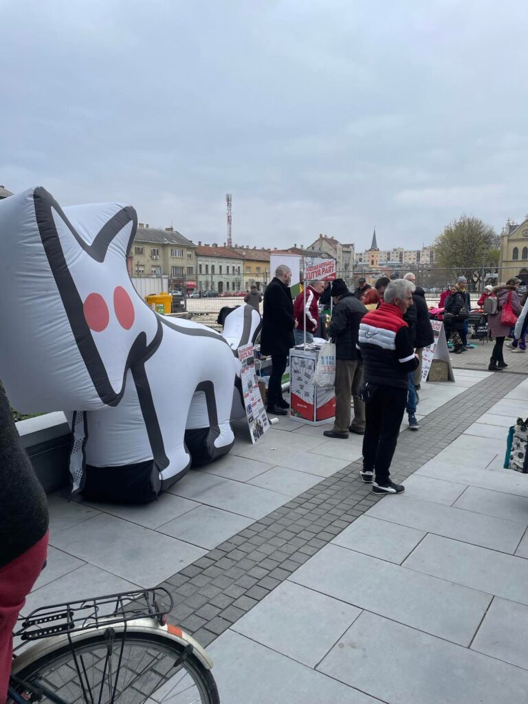 Március 26-án az újpesti piac előtt vártuk a nagyérdeműt, összesen több mint 800.000 forint értékű bokorral – hogy ugyan, ültessenek már közterületen!