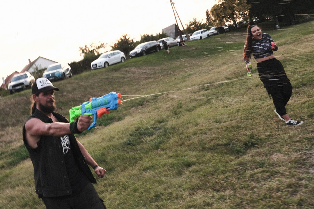 Kora délután kezdtünk, az első programpontként meghirdetett összeesküvéselmélet-gyártó workshop még elég lightos formában zajlott le, a vízipisztolycsatát viszont már sikerült rendesen megtartani. Kitűzőkészítés és hennázás is volt, mindeközben a bográcsban vegán ír hamisgulyás főtt, szójagombóccal és zöldségekkel.