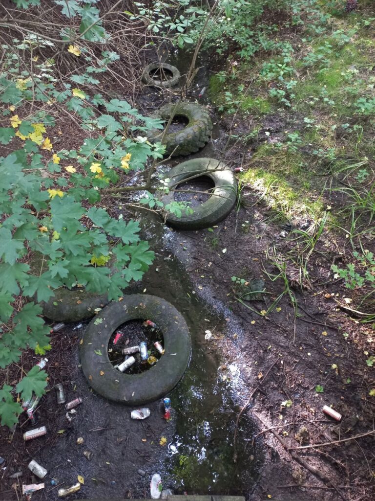 A fenti probléma megoldása már meghaladta a lehetőségeinket, a szemetet (építési törmeléket, cseréptéglát, drótkerítést, stb.) viszont összeszedtük, a gumiabroncsokat pedig egy terepjáró segítségével vontattuk ki a mederből. Tegyük hozzá, hogy a polgármester végig partner volt az akcióban: bár állítása szerint eddig nem tudott a problémáról, együttműködött velünk és még konténert is intézett a szállításhoz.