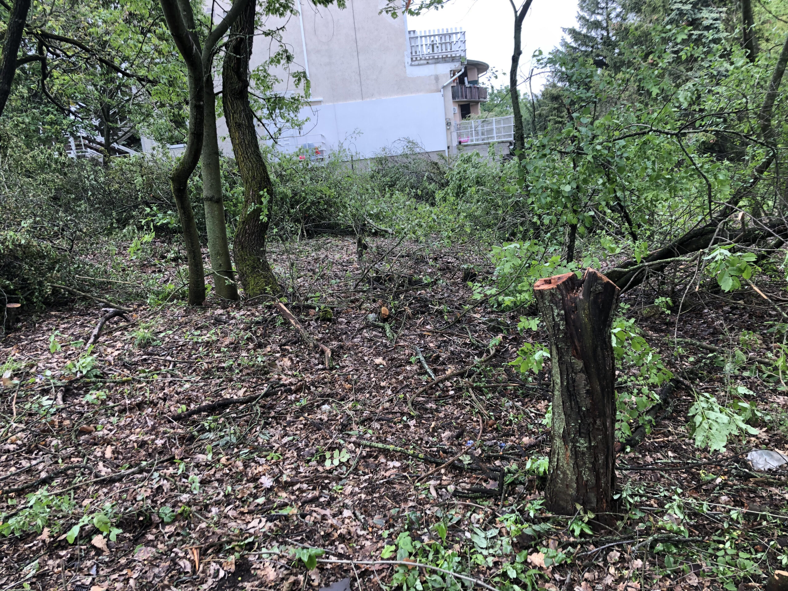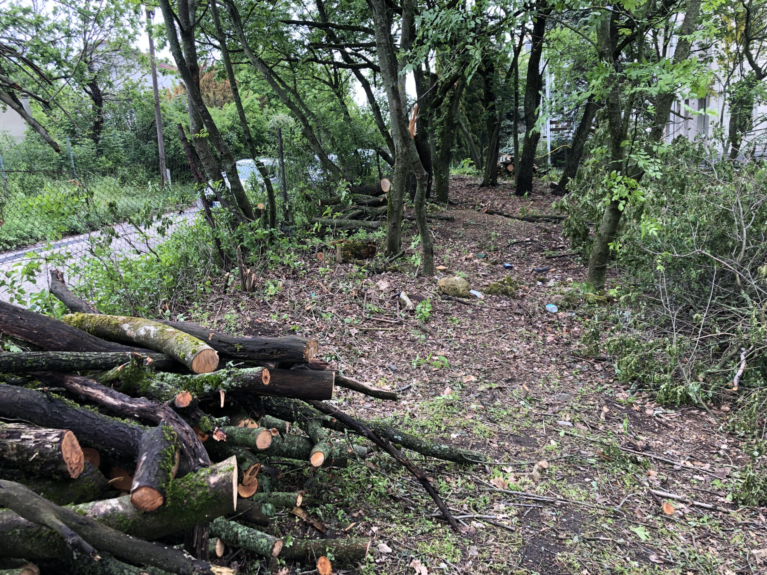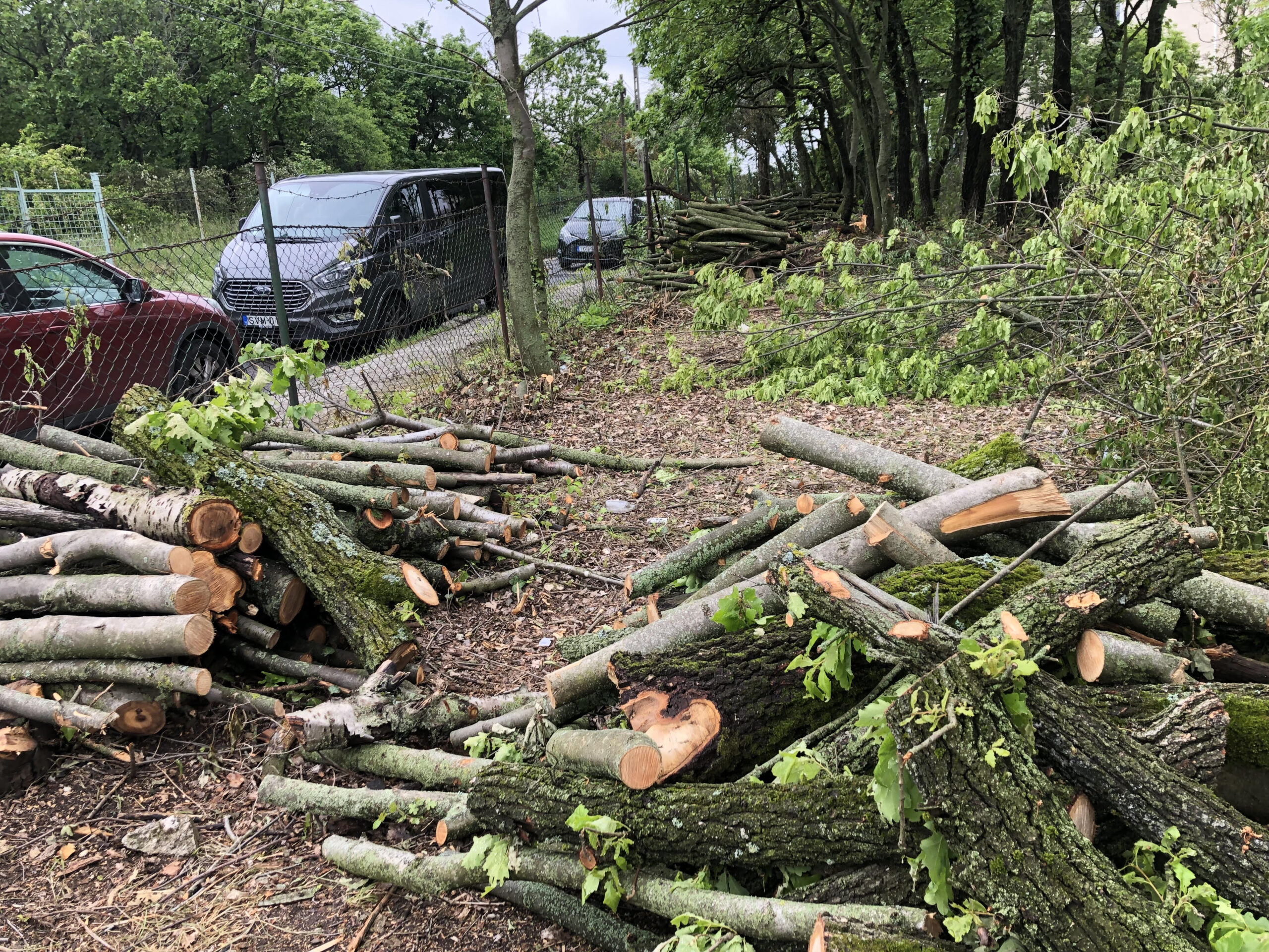 Az Esztergom-budapesti egyházmegye telkén vágtak ki rengeteg fát a múlt héten. Ez még csak a kezdet, a munkával koránt sem végeztek, csak félbehagyták, mert jött az eső. Az önkormányzat, bár eljárást indított, a helyszíni szemle után sem állította le a fakivágást, pedig a pusztításra rossz ránézni és szabálytalan is, hiszen egy csomó 10 centinél vastagabb törzsű fát vágtak ki bármiféle engedély nélkül. De a hivatal, elmondása szerint, jóhiszeműen jár el.