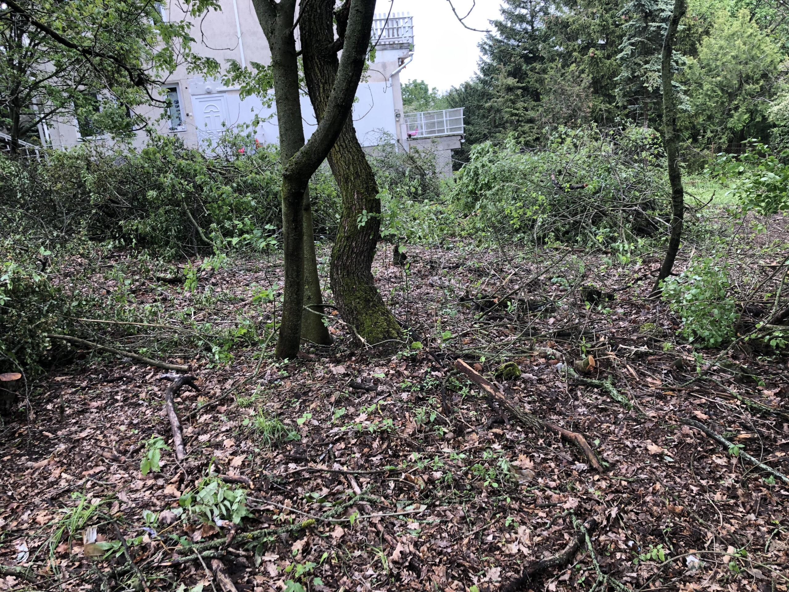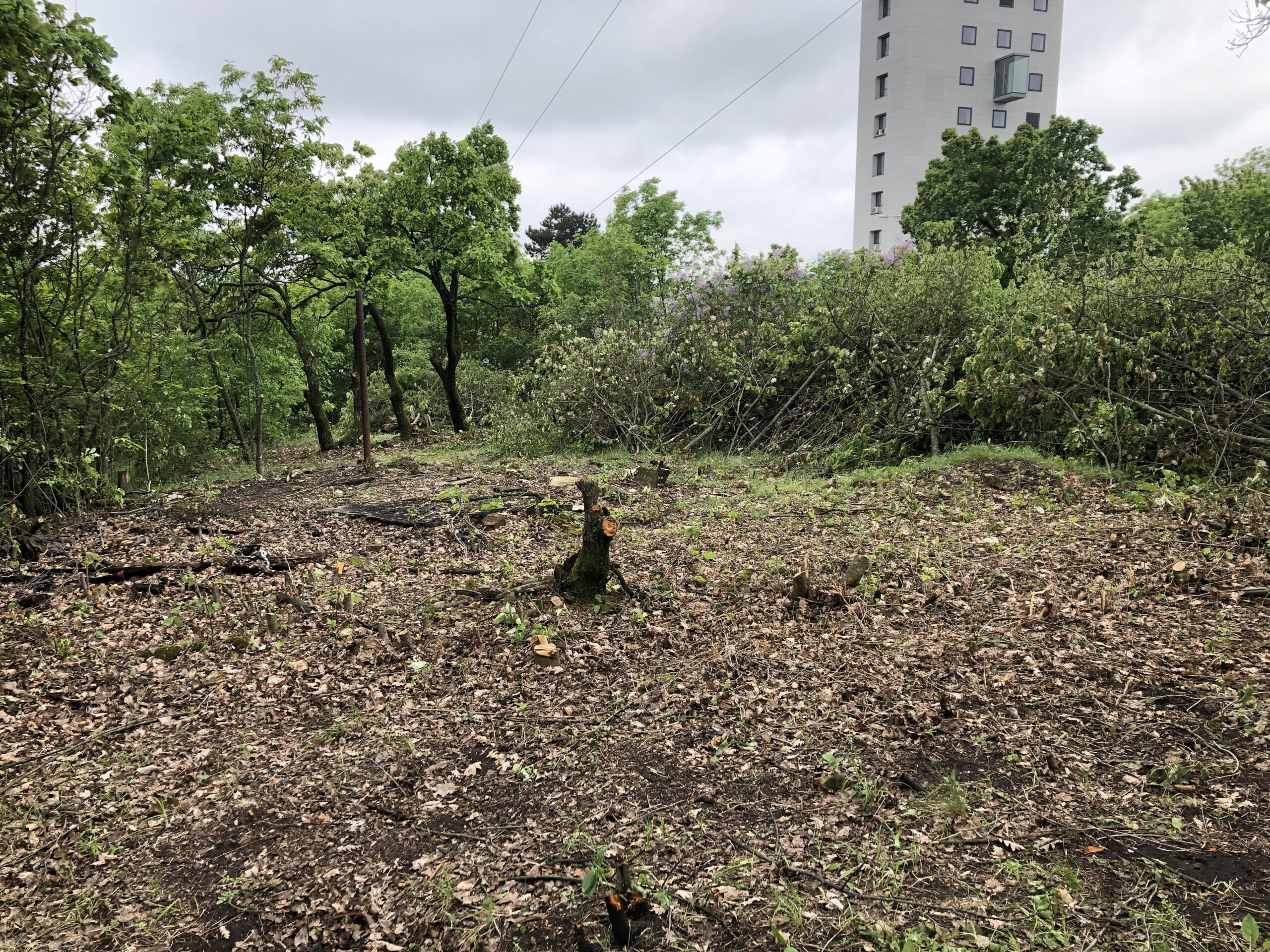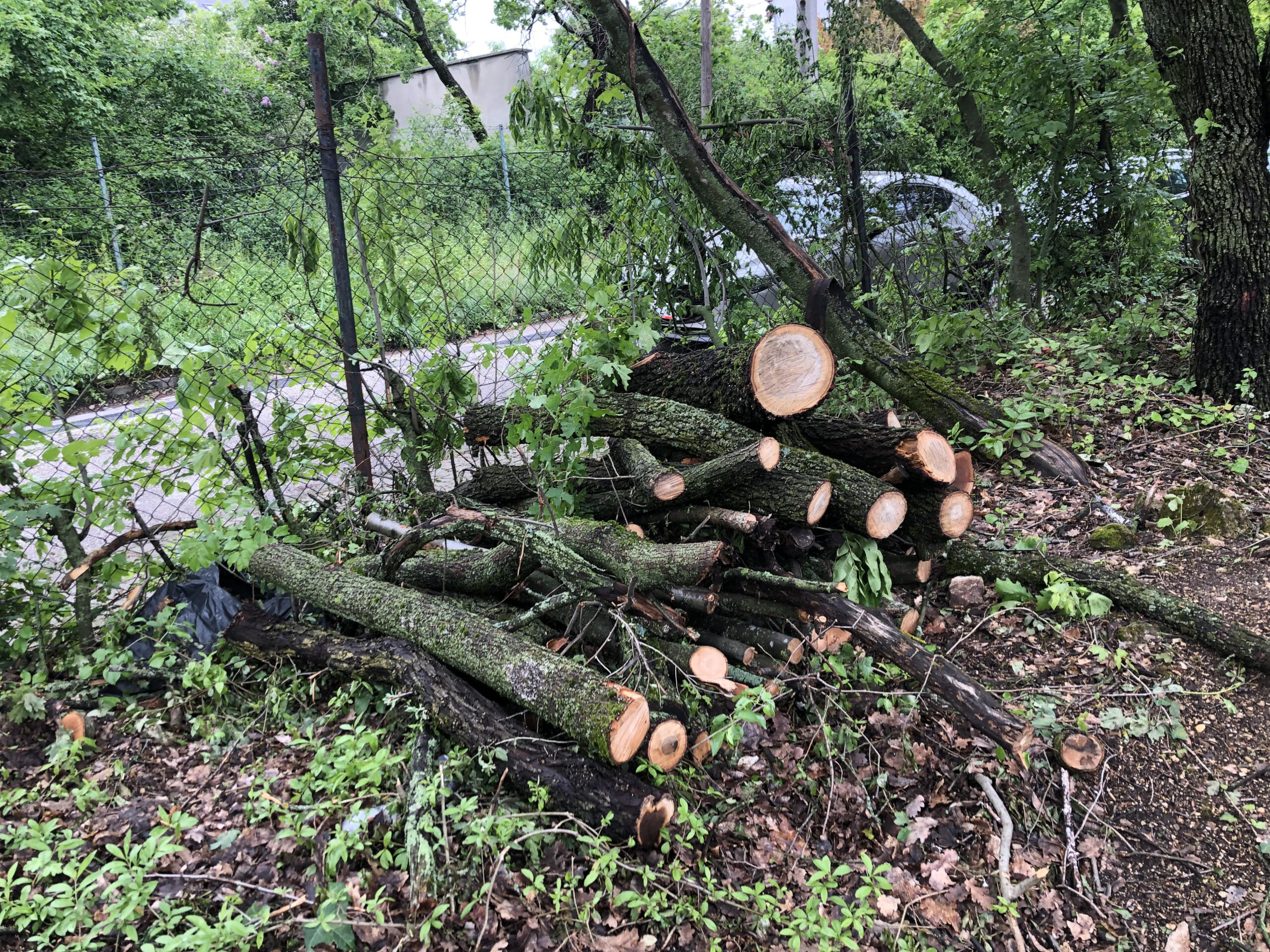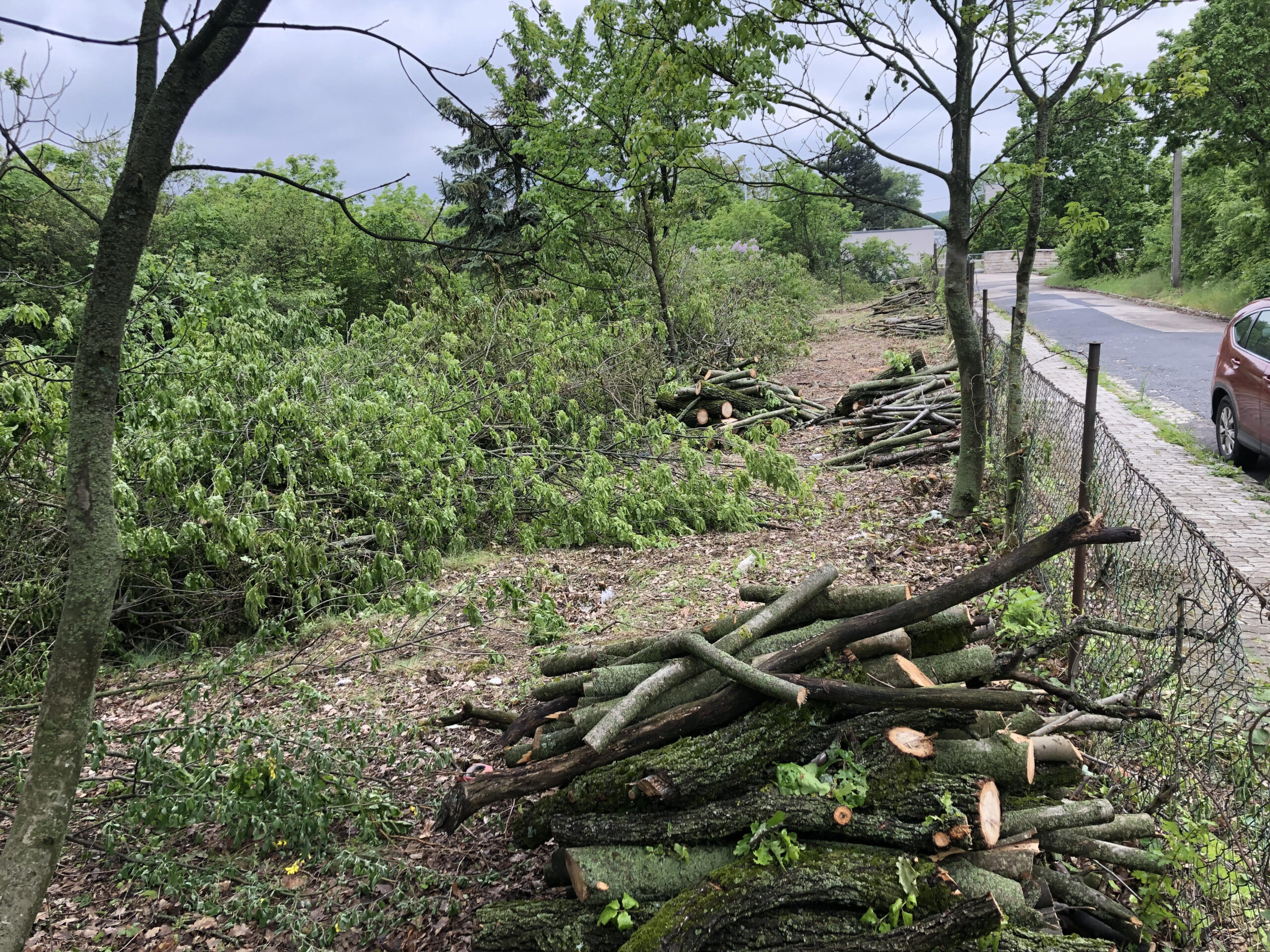 Az Esztergom-budapesti egyházmegye telkén vágtak ki rengeteg fát a múlt héten. Ez még csak a kezdet, a munkával koránt sem végeztek, csak félbehagyták, mert jött az eső. Az önkormányzat, bár eljárást indított, a helyszíni szemle után sem állította le a fakivágást, pedig a pusztításra rossz ránézni és szabálytalan is, hiszen egy csomó 10 centinél vastagabb törzsű fát vágtak ki bármiféle engedély nélkül. De a hivatal, elmondása szerint, jóhiszeműen jár el.