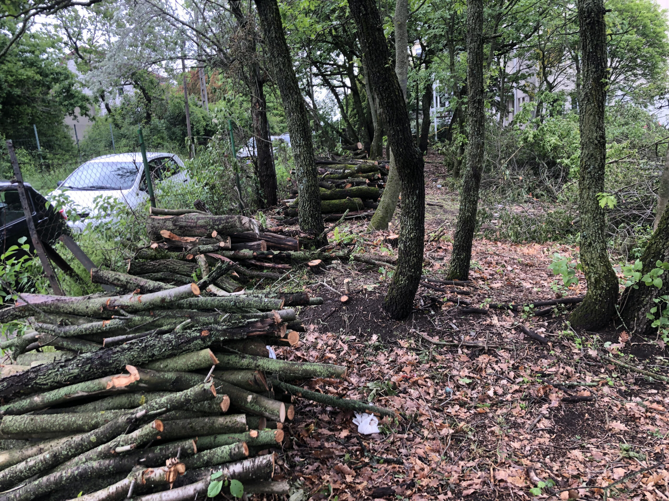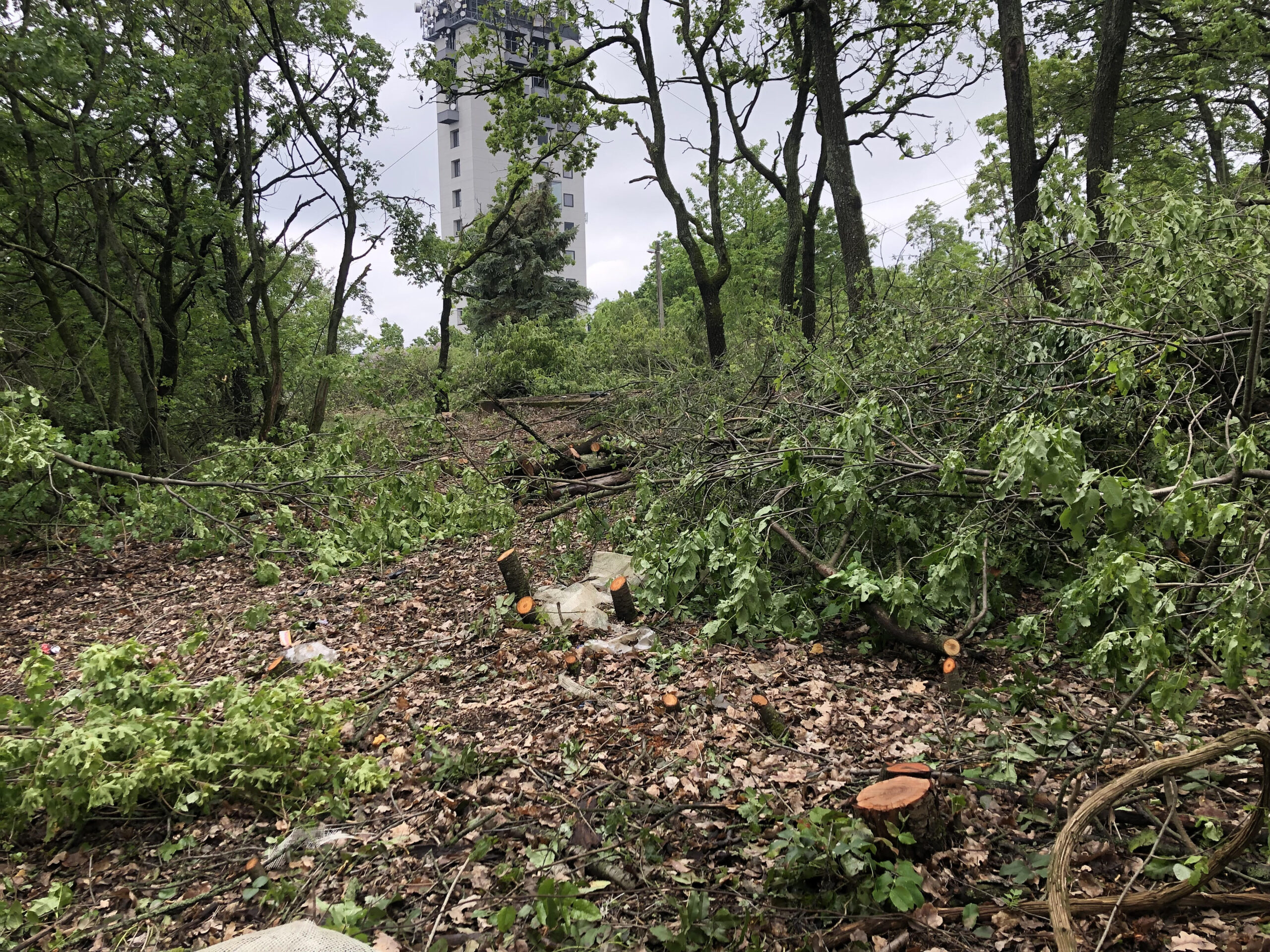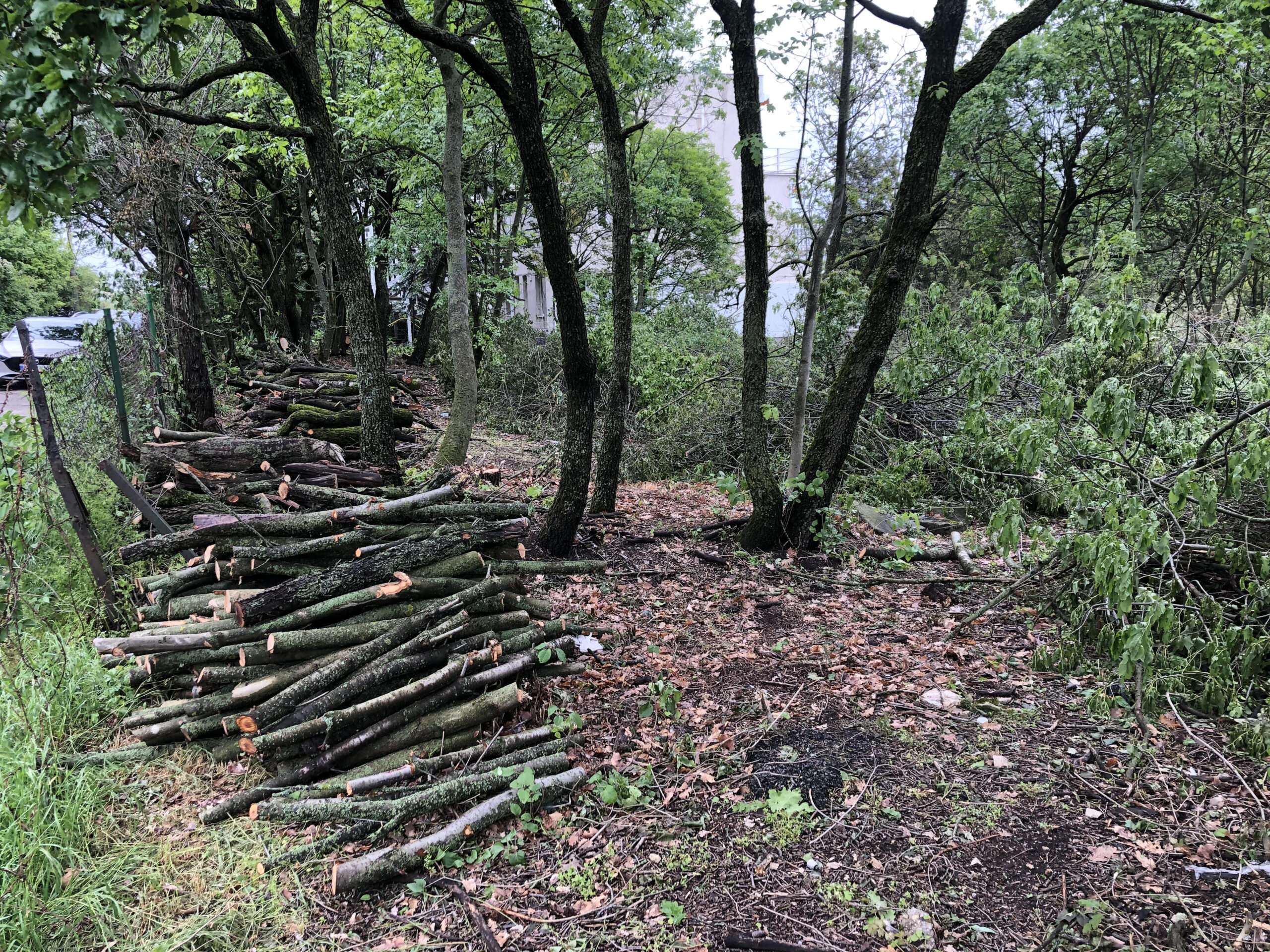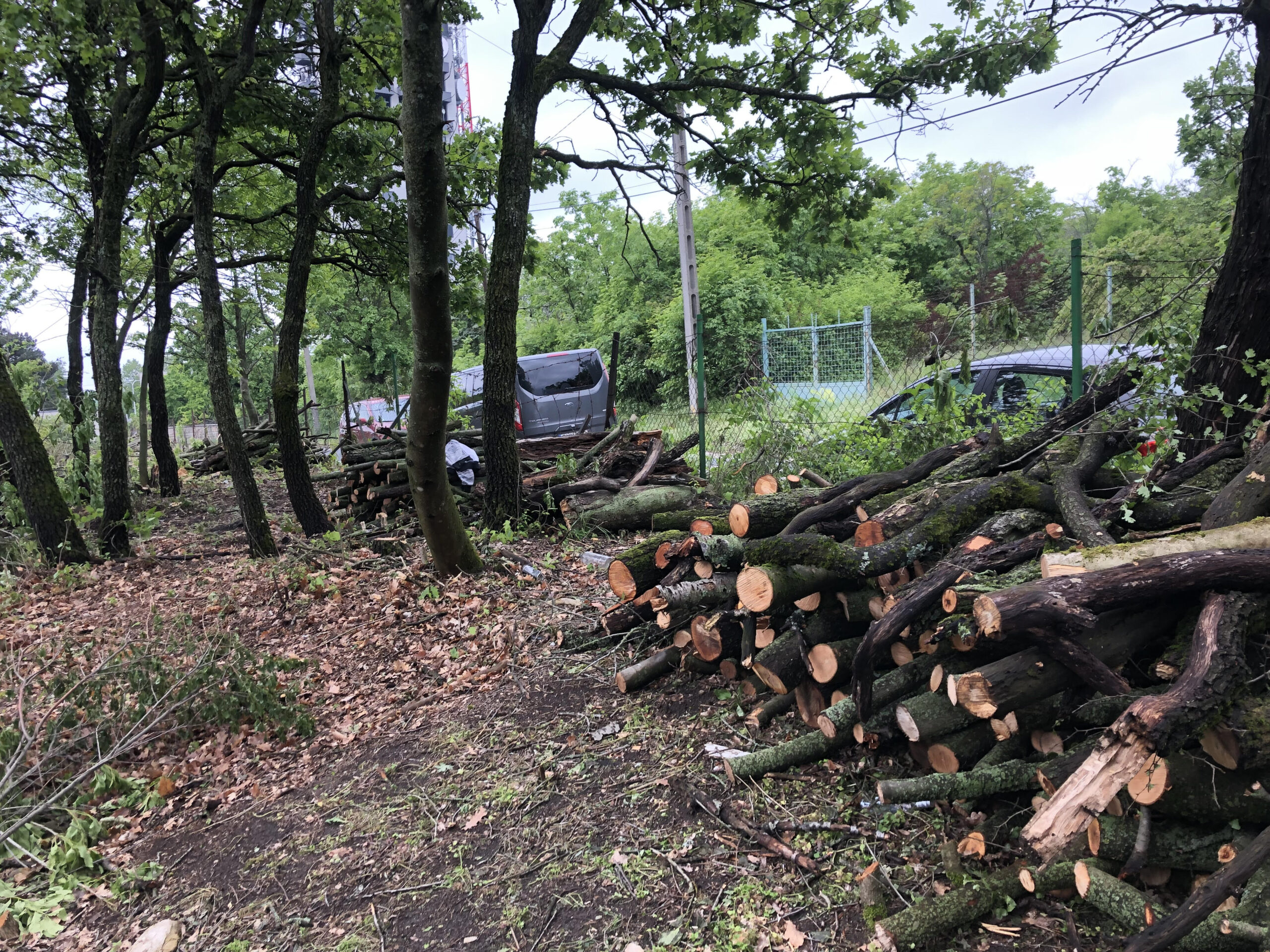 A Pipiske, a Csíz és a Farkasvölgyi út közti telkeken múlt hét hétfőn reggel 9 órától kezdődően 6 fős láncfűrészes csapat fakivágási tevékenységre kezdte adni a fejét. A kivágott fatörzsek átmérője jelentős számban (több tucatnyi esetben) a 10 cm-t meghaladja, 30 cm átmérőjű 50-60 éves tölgyfákat is kivágtak. A ki nem vágott nagy méretű fákat jelentős mértékben csonkolják. Mivel a munkások nem irányítottan végezték a tevékenységet, a kivágott és ki nem vágott fák nincsenek megjelölve, munkavédelmi eszközöket nem használtak ezért feltételezhető volt, hogy a fakivágás nem engedélyezett módon történik.