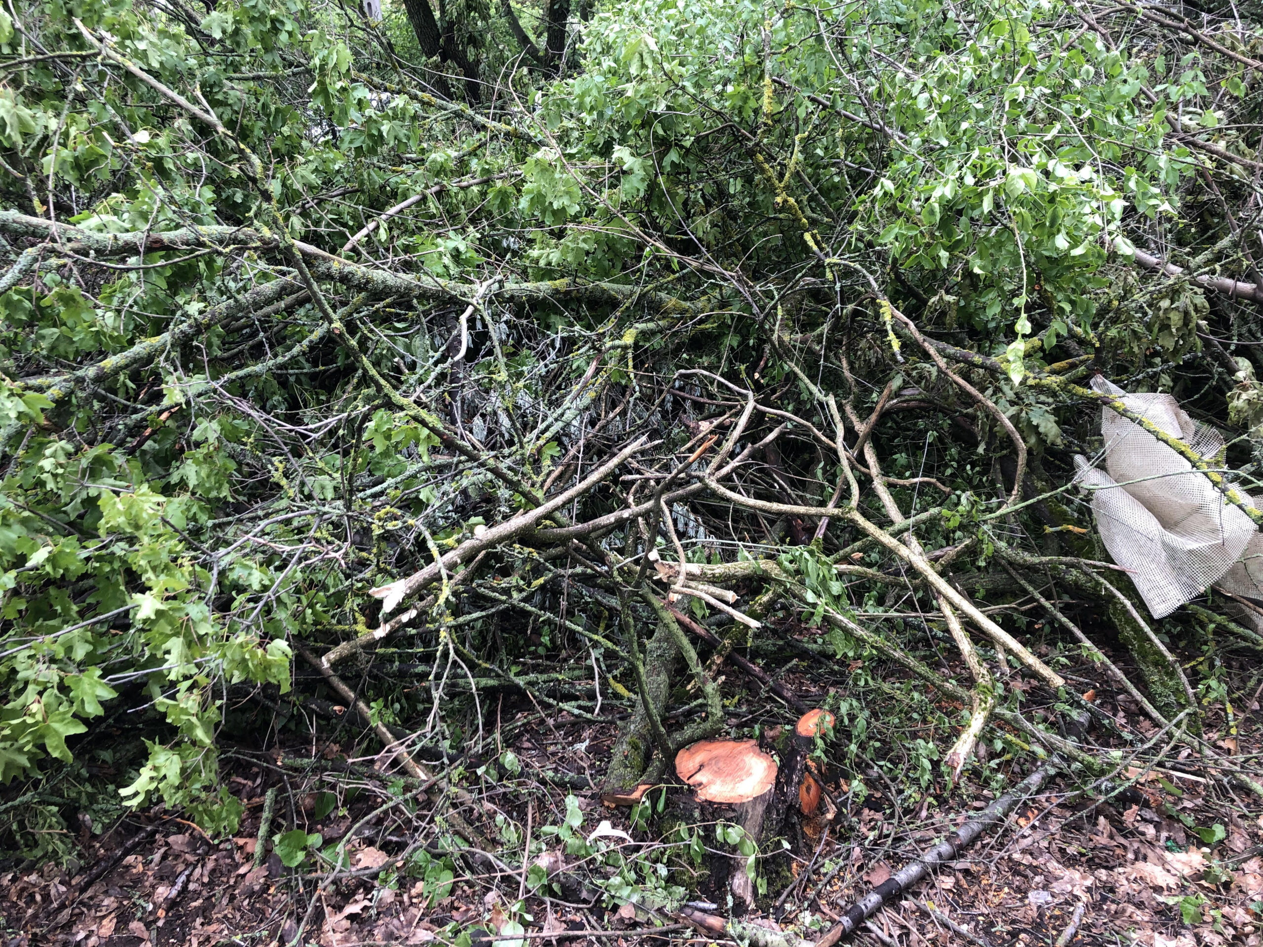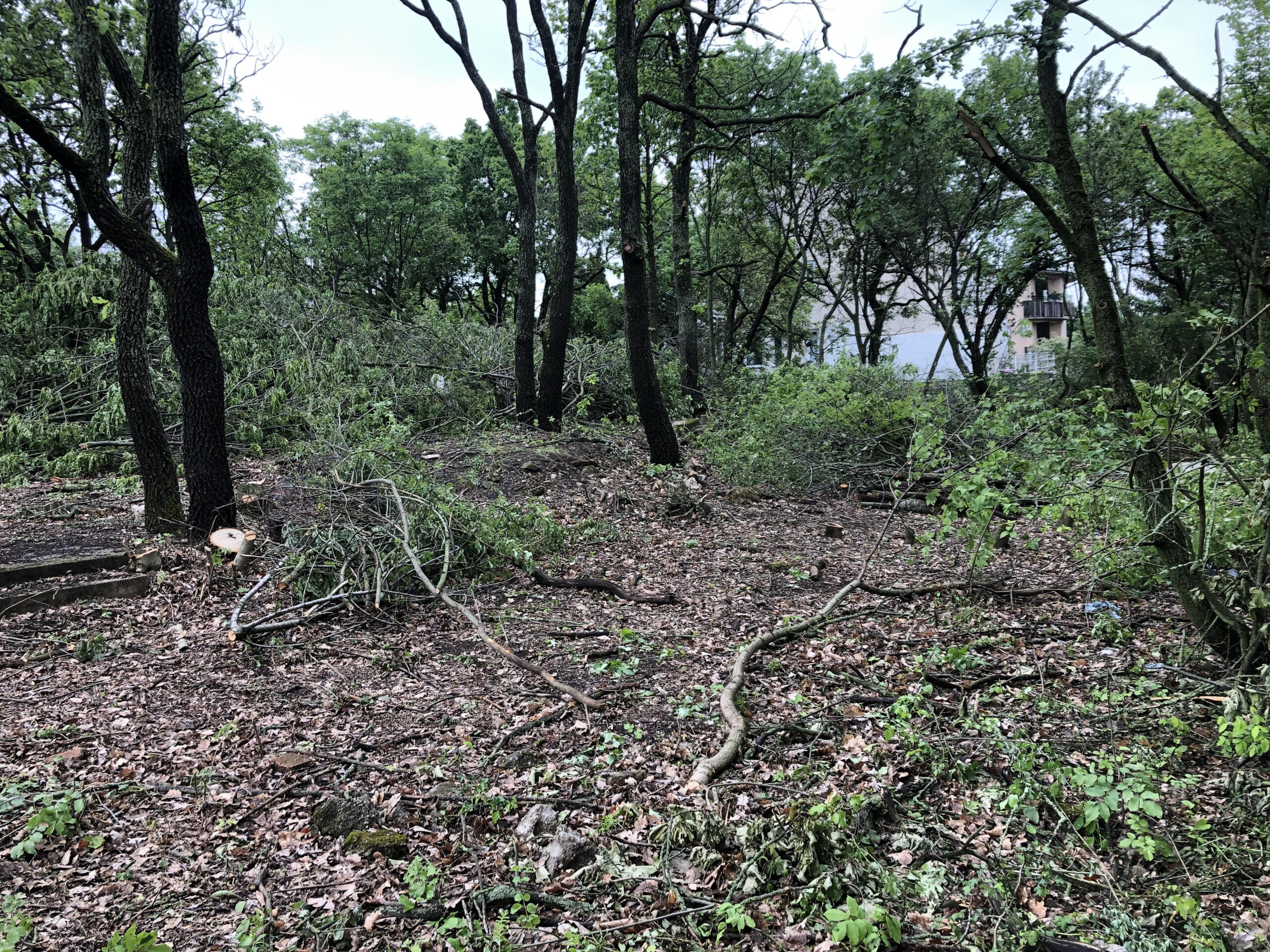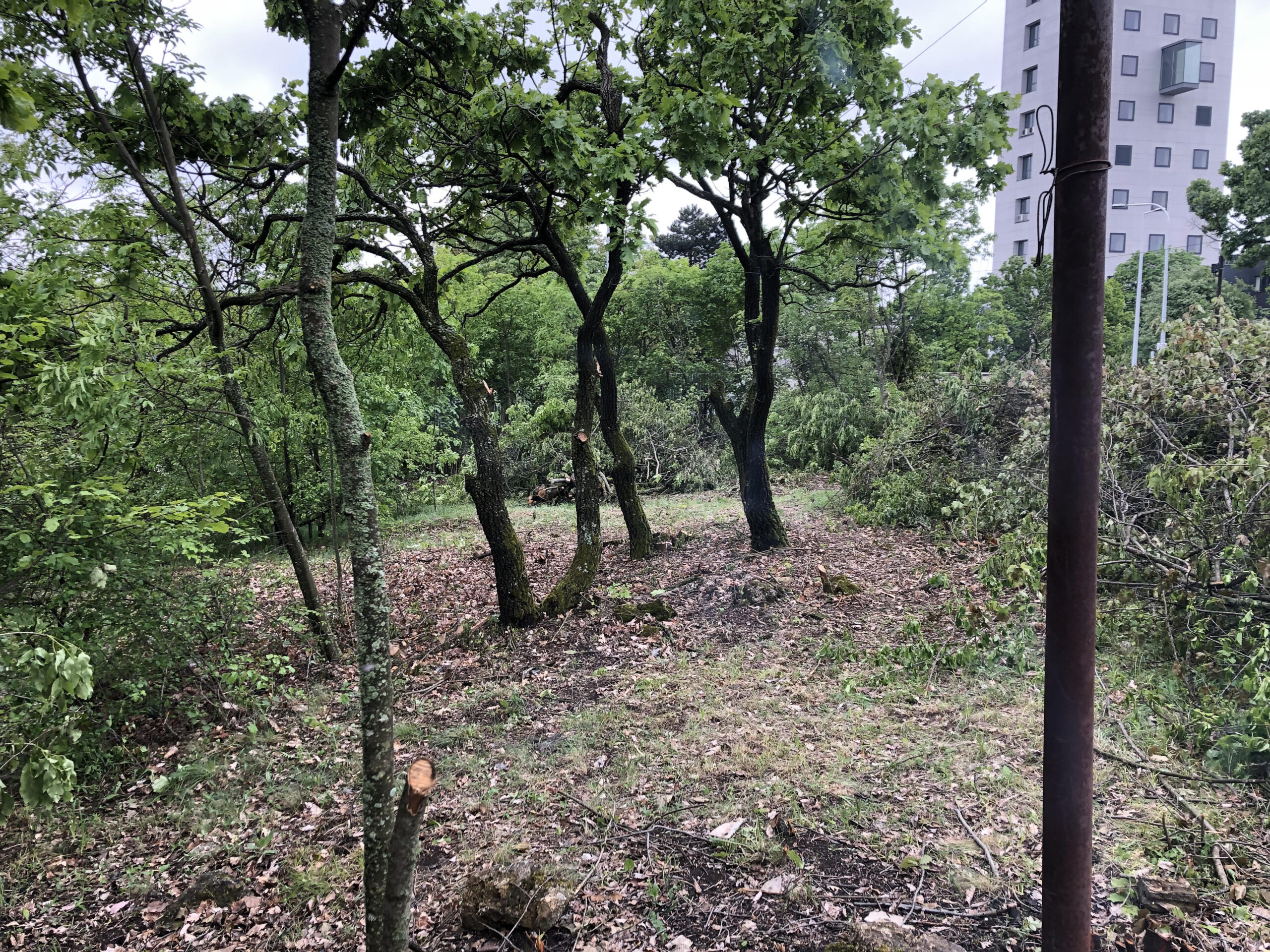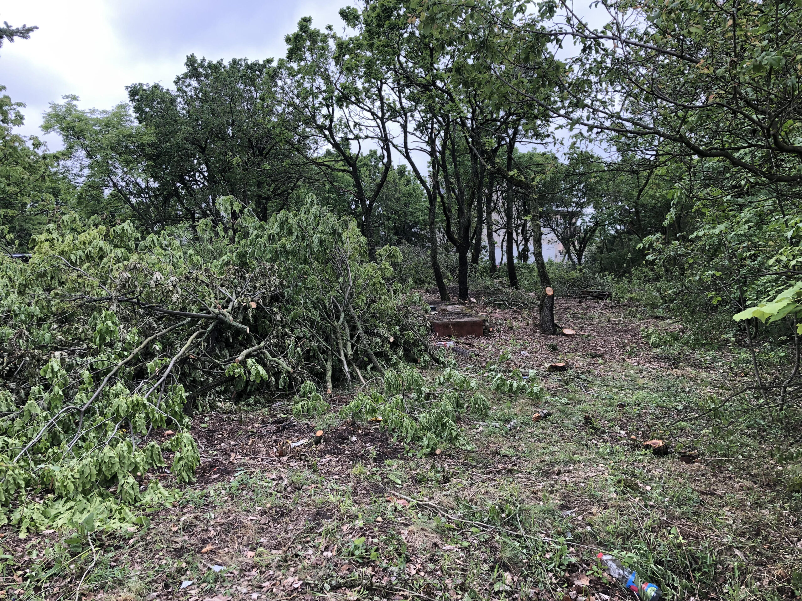 A Pipiske, a Csíz és a Farkasvölgyi út közti telkeken múlt hét hétfőn reggel 9 órától kezdődően 6 fős láncfűrészes csapat fakivágási tevékenységre kezdte adni a fejét. A kivágott fatörzsek átmérője jelentős számban (több tucatnyi esetben) a 10 cm-t meghaladja, 30 cm átmérőjű 50-60 éves tölgyfákat is kivágtak. A ki nem vágott nagy méretű fákat jelentős mértékben csonkolják. Mivel a munkások nem irányítottan végezték a tevékenységet, a kivágott és ki nem vágott fák nincsenek megjelölve, munkavédelmi eszközöket nem használtak ezért feltételezhető volt, hogy a fakivágás nem engedélyezett módon történik.